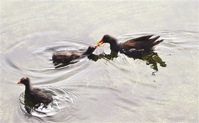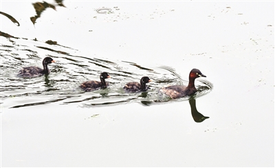 去年9月中旬,一群鸊鷉“现身”市城市中心公园。它们在水中畅游,憨态可掬的样子引得在公园里休闲散步的人们纷纷驻足观看。鸊鷉擅长游泳和潜水,是国家“三有”保护动物,常栖息于湖泊、水塘、水渠中。